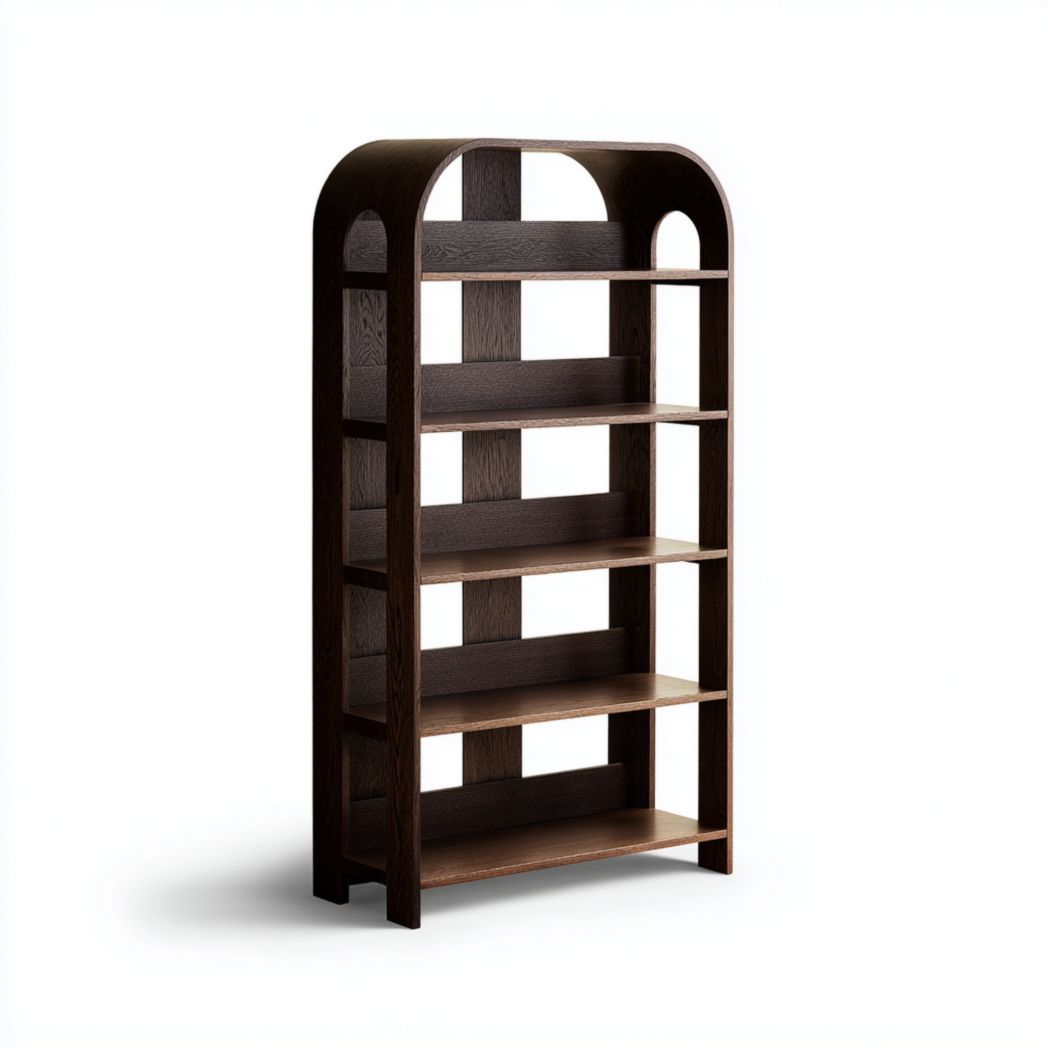 Bibliothèque ouverte à plusieurs niveaux avec structure arquée