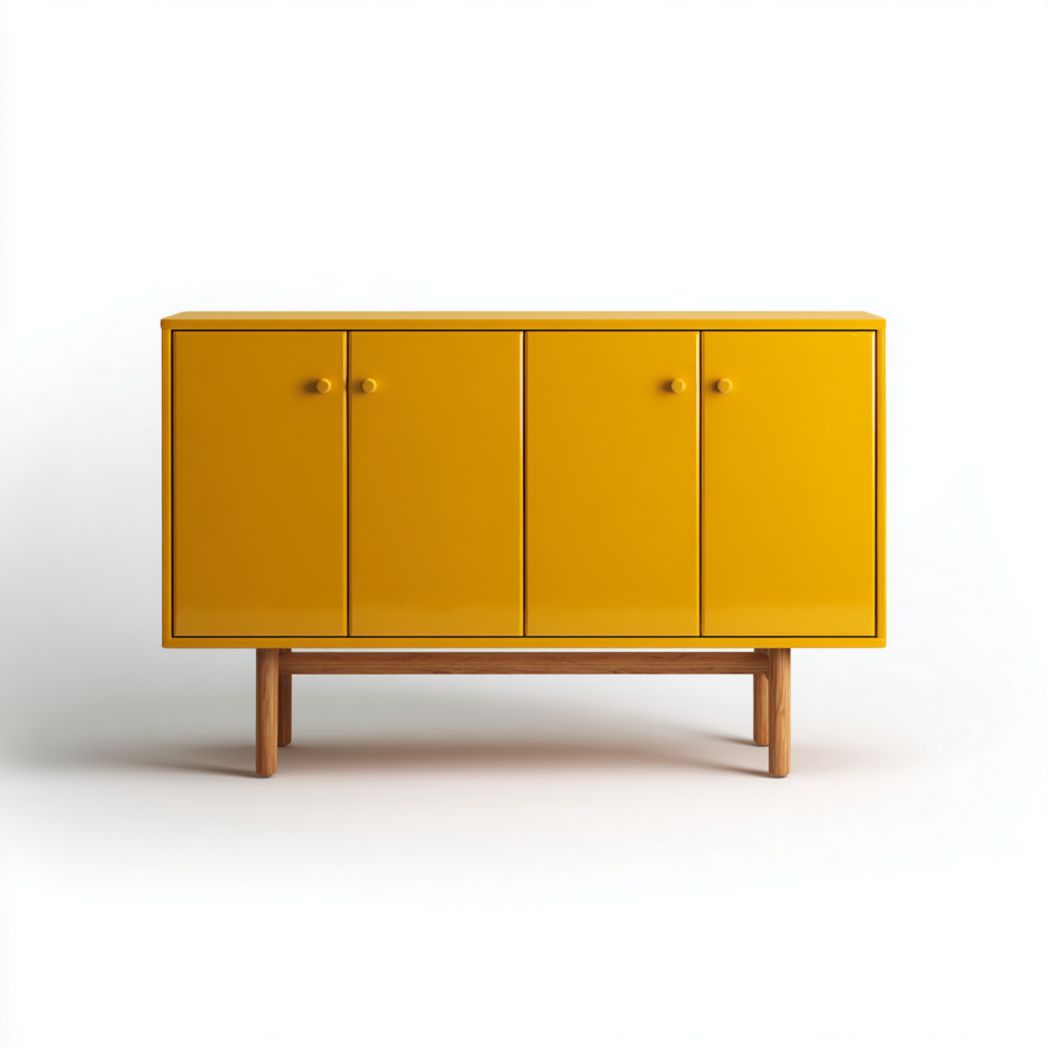 Buffet à tiroirs multiples avec pieds métalliques roses