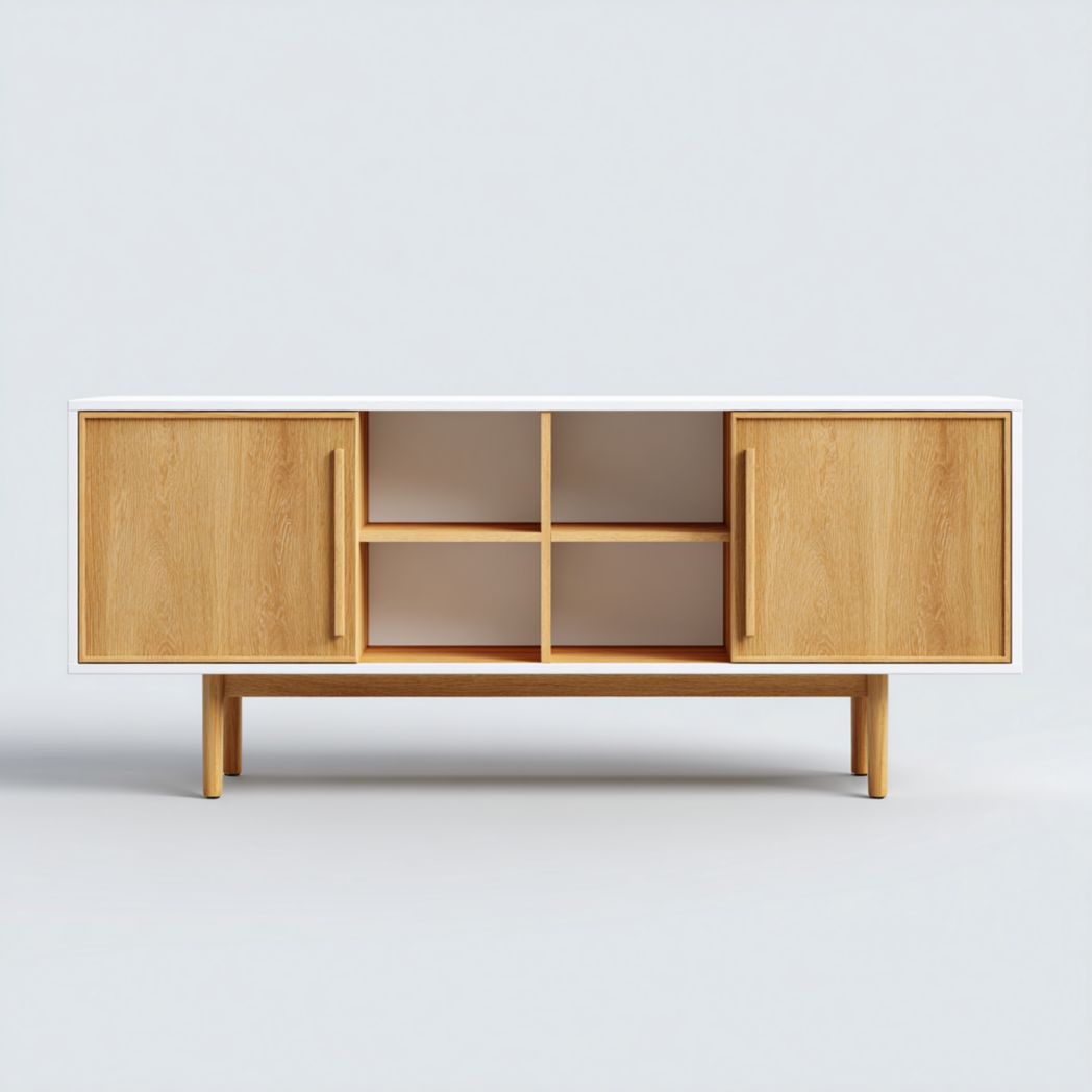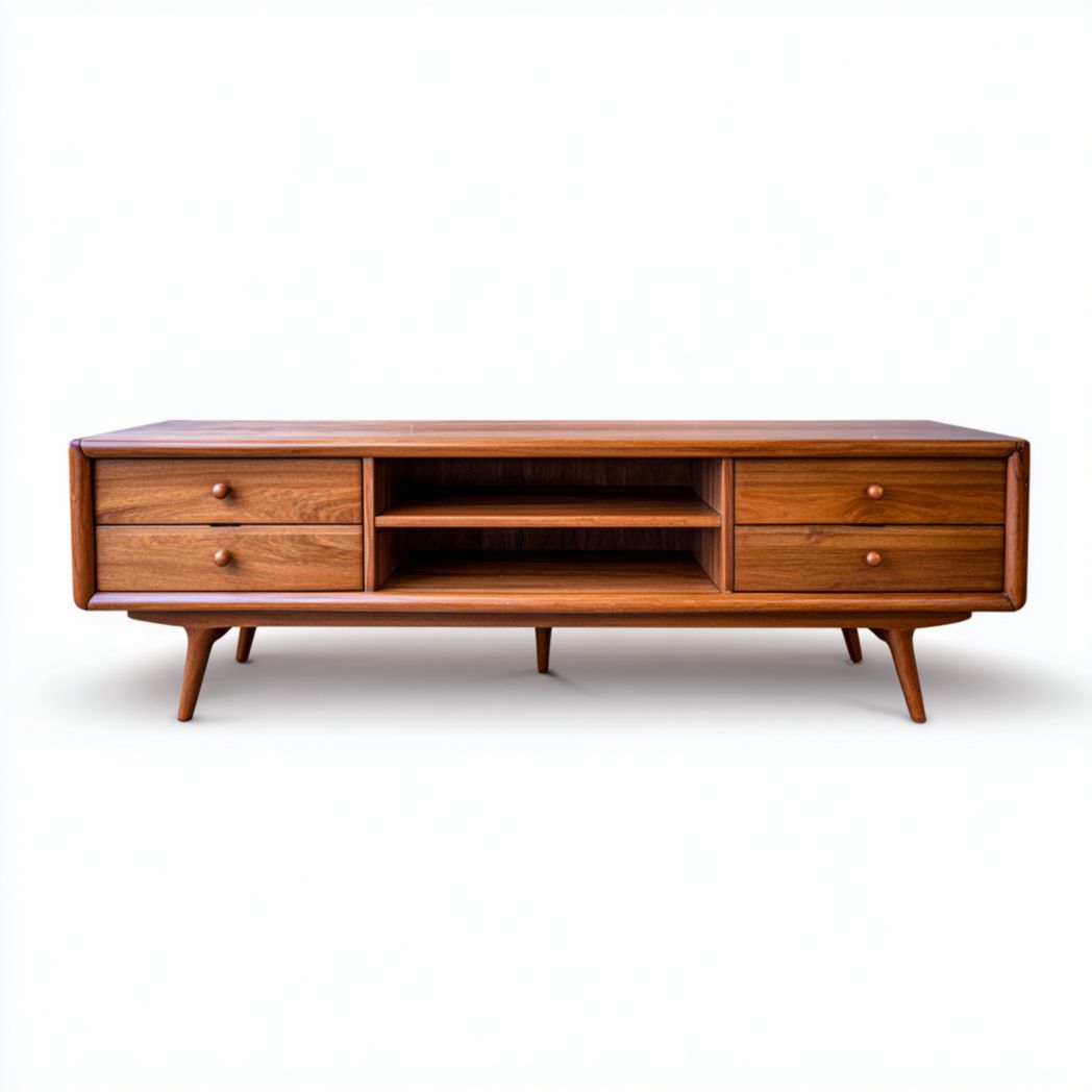 Meuble TV avec quatre tiroirs et niches ouvertes